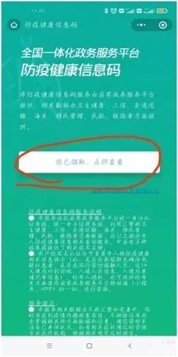 2、領取“防疫健康信息碼”,輸入信息后點擊立即查看。